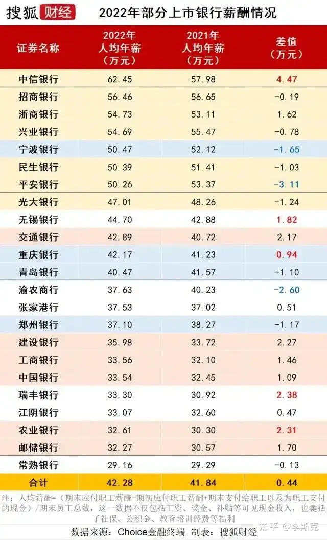 据媒体报道,2022年上半年,23家统计银行的员工年薪平均值为42.28万元,较2021年度高出4400元。